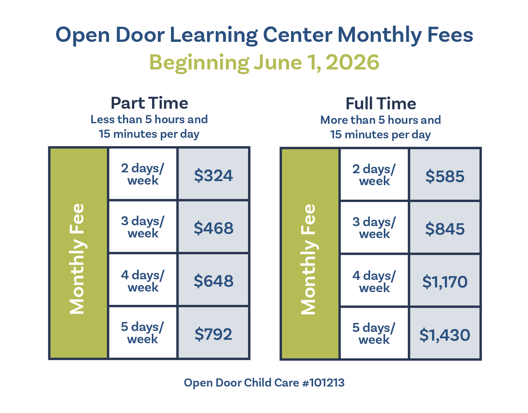 Open Door Learning Center is an equal opportunity provider.