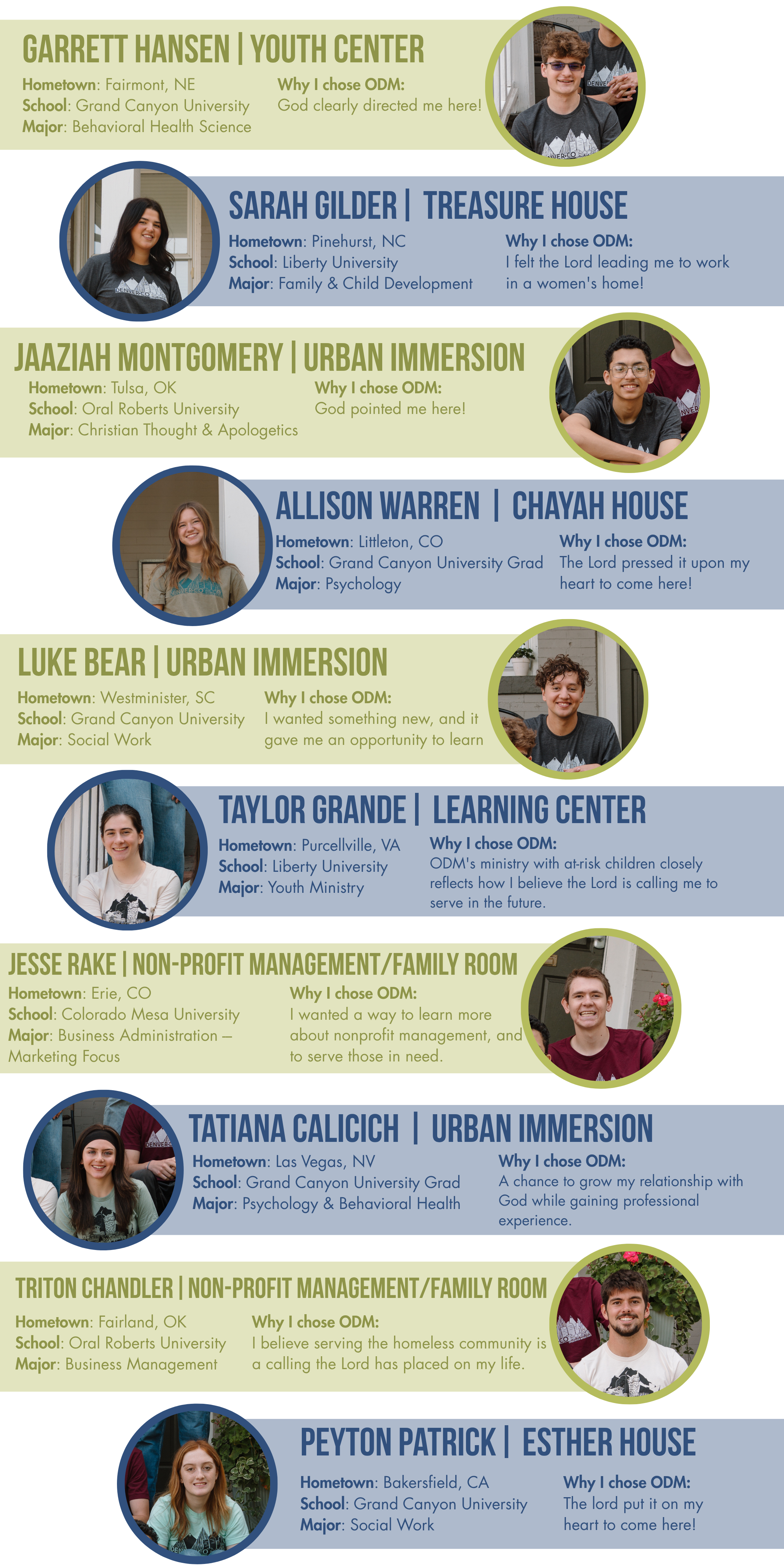 Summer is in full swing, and with it comes a new crew of incredible interns joining the Open Door family! Each year, we open our doors to college-aged students from across the country who are eager to serve, learn, and grow in their faith and calling. This summer, we’re thrilled to welcome 10 passionate and talented individuals who are jumping into life on the block and already making a great impact. We can’t wait for you to meet them!