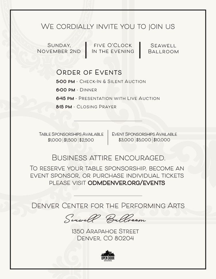 To secure your tickets, become a sponsor, and learn more about this years Gala, visit odmdenver.org/events or click the links below.